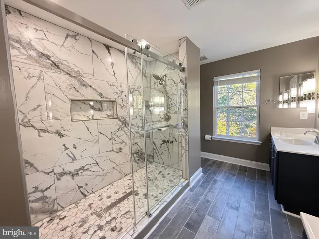A stunning single-family residence, adjacent to trees, boasts an abundance of natural light and an open-concept layout. The expansive front driveway, oversized deck, and sizable backyard render this home truly unique. The upgraded kitchen features granite and marble countertops, an oversized center island with stainless steel appliances, and custom cabinets with pull-out shelving and soft-close doors. The main level, replete with hardwood flooring, comprises a powder room, formal living and dining areas, an office, and an expansive kitchen and family room. The deck, accessible from the kitchen, leads to a distinctive and oversized deck area, ideal for barbecues or gatherings. The upper level boasts new luxury vinyl plank (LVP) flooring, a laundry room, a primary bedroom with a walk-in closet and a recently renovated bathroom with his-and-her vanity and oversized shower. Two additional generously sized bedrooms and a hallway bathroom are also located on this level. The basement is fully finished, housing a large recreation room and full bathroom. The home is enclosed by a fenced backyard, offering privacy as it adjoins trees. The location is favorable, situated near Gainesville, Bristow, and major routes such as 234 and 66, as well as the Jiffy Lube center. The property is zoned for Gainesville schools due to its proximity to the city. Submit your application today!
