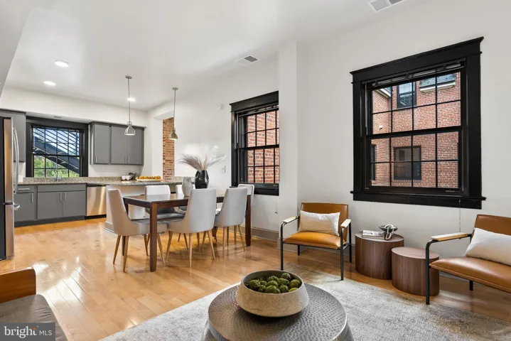Welcome to the Quarters at Liberty, a collection of six new 1-2 bedroom, two-level condominiums developed by The Alexander Company inside the historic residences of the former prison guards. With an industrial loft aesthetic, this spacious 2,080 SF home welcomes visitors into an open floor plan with a living room, dining area, and kitchen. The generously proportioned kitchen offers a breakfast bar, gas range, stainless steel appliances, granite countertops, and plentiful storage. Just off the kitchen, the bright family room is appointed with exposed brick walls. A powder room and coat closet complete the main level. Just upstairs are a home office area, primary suite with a large walk-in closet, en-suite bathroom and laundry, and a second bedroom with walk-in closet and bathroom. A second home (#101) is available to tour and purchase: a one bedroom, two-level, 1345 SF home offered for $540,000. Residents of the Quarters enjoy all the amenities of Liberty including the fitness room, yoga room, community center, outdoor pool, playground, and Liberty Green. Residents of Liberty enjoy shopping at Lidl, dining at Taco Rock, Yafa Grille, Ledo Pizza, and Kokee Tea, as well as working out at F45 or Capital MMA. Parents appreciate the convenience of the renown Brynmar Early Education and Preschool right there at Liberty. The Quarters is conveniently located less than 1.5 miles from I-95, 5 miles from Occoquan, 9 miles from Fort Belvoir, 17 miles from the Pentagon, 20 miles from Reagan National Airport and Washington, DC.