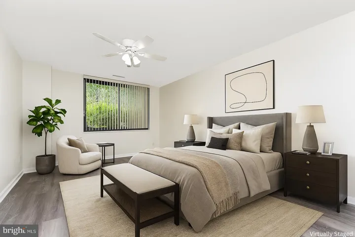 Spacious end unit on ground level with large enclosed private walk-out patio and 1 garage parking spaces. At 2079 square feet, the Eastham model is a true 3 bedroom and is the largest home in the building. Bright and open floor plan. Updated bathrooms, tile entry, wood floors in bedroom & dining room. Amazing closet space/storage – walk in closets in all the bedrooms. New Washer & Dryer in 2025. New Refrigerator, Dishwasher, & Microwave in 2024. Range replaced in 2022. New HVAC and Water Heater in 2019. Window treatments convey. Great location with loads of amenities: 24-hour concierge, rooftop sundeck, party room, billiard room, exercise room, large outdoor pool, and picnic area. Within walking distance to restaurants and shopping. Minutes to Mark Center Alexandria and the 395/Seminary Road Interchange. Less than 5 miles to Joint Base Myer Henderson Hall & the Pentagon. Close to Shirlington, Old Town Alexandria, Pentagon City, and Amazon HQ2, and DC.