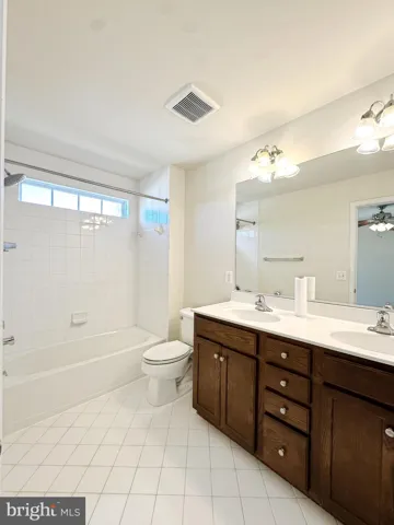 Conveniently on the Loudoun/Fairfax County border. This spacious 3BR, 3.5BA home features a 2-car garage with a driveway, an open-concept layout, and abundant natural light throughout. The main level includes a versatile bonus room with a full bath, perfect for a recreational room or office. Enjoy 9’ ceilings, hardwood foyer, oak handrails, and upgraded kitchen cabinetry. The large kitchen opens to a light-filled living space with access to a private balcony deck backing to open space. Additional highlights include three ceiling fans with lights, LED bedroom lighting, and thoughtful upgrades throughout. Conveniently located near Eastgate Marketplace, Costco, Target, and community amenities including pool and clubhouse.
