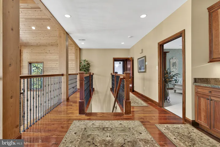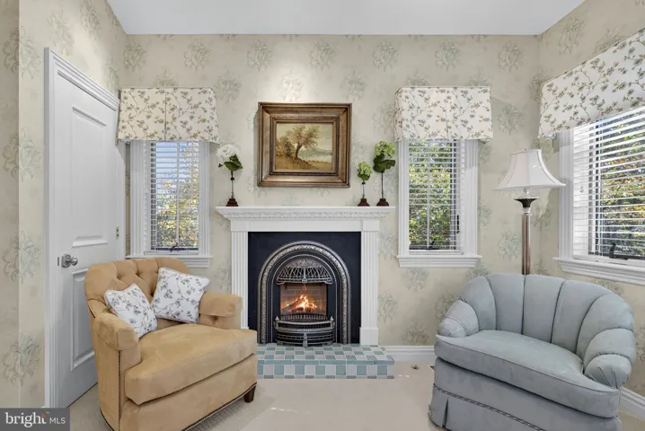 Upstairs, you’ll find a suite with adjoining living quarters. Both offer ample space for furniture and desired extras, and one side includes a lovely sitting room featuring an opulent fireplace and hearth. The rooms share a decadent full bath with a double vanity, soaking tub, doorless shower, and private commode. This floor also includes a media or entertainment room (or 5th bedroom), and a centrally located mini kitchen in the hallway alcove allows for storage of snacks and drinks.