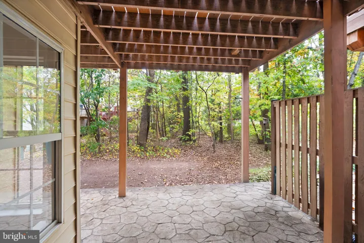 The family room centers on a gas fireplace – useful, warm, and the kind of feature that actually gets used. Off the main living level you step out onto a large deck, the natural place to start a morning or end an evening, then down to backyard and a custom stamped–concrete patio that backs to trees. That wooded backdrop isn’t just pretty; it gives you quiet, privacy, and a sense that the neighborhood stops at your back tree line.