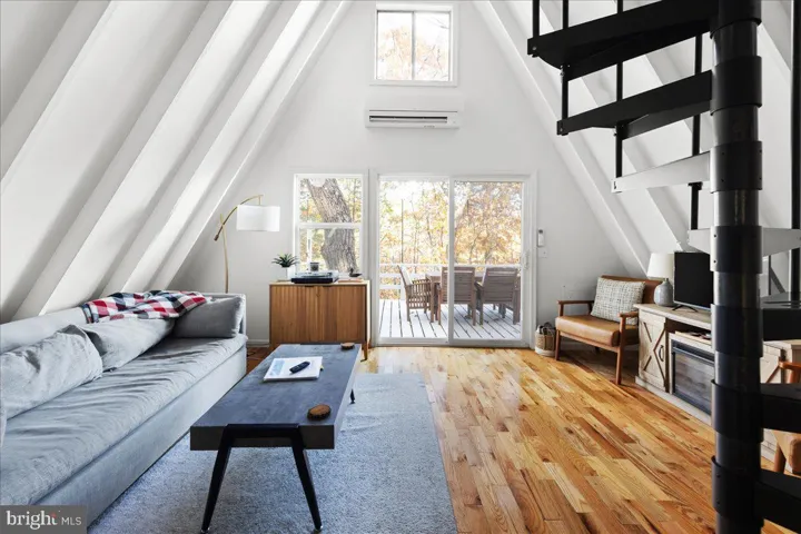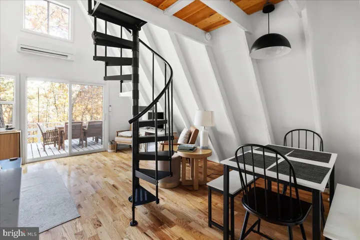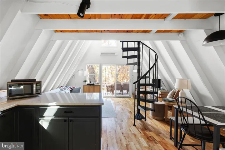 A bedroom and full bathroom are conveniently located on the main level, making everyday living simple and accessible. Follow the spiral staircase to the loft-style second bedroom, a versatile space that can easily serve as a guest suite, home office, or creative retreat — whatever your lifestyle calls for.
