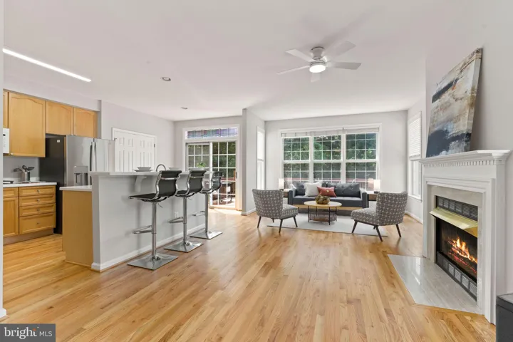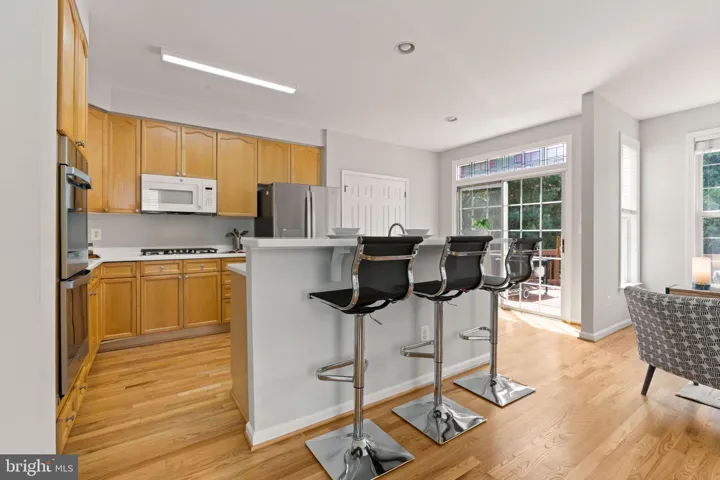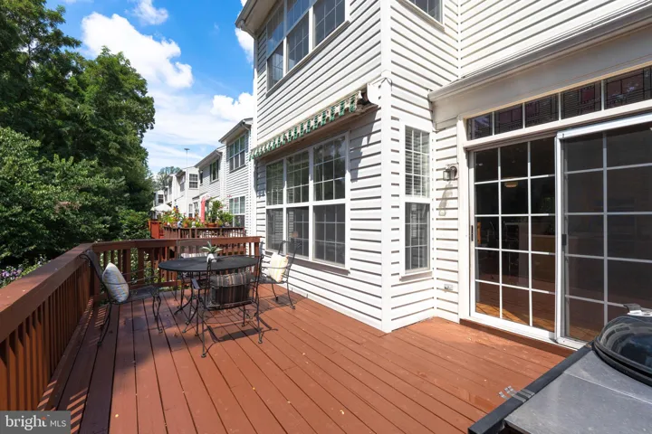 Light-filled, stylish, and freshly updated in 2025, this elegant end-unit townhome shines with modern upgrades and timeless appeal. Freshly painted in versatile Light Pewter with crisp white trim, the home feels bright, polished, and move-in ready. Newly refinished oak hardwood floors flow throughout the main level, leading to a kitchen upgraded with brand-new GE stainless steel appliances and modern LED lighting. Step outside to the freshly painted deck with an automatic awning, your own outdoor living room, perfect for morning coffee, evening grilling, or quiet relaxation.
