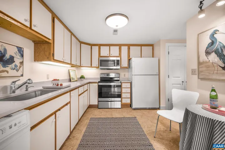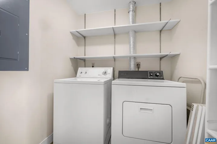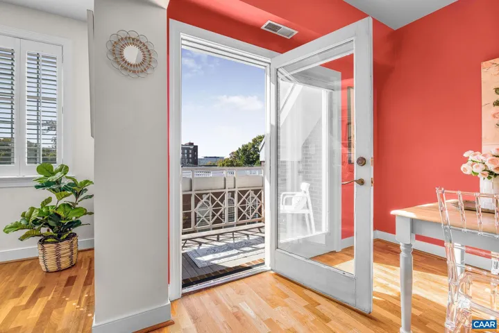 QUEEN CHARLOTTE // Perched on the top floor of one of Downtown Charlottesville?s most walkable addresses — this two-bedroom, two-bath condominium is filled with natural light from morning to dusk. The open living and dining areas are framed by sweeping views of Monticello and the city skyline ? a daily reminder of why this location is so special. A gas fireplace anchors the living space, flanked by built-in bookshelves that bring warmth and character. Sunlight pours through every room thanks to the building?s southern exposure, creating an inviting sense of ease and calm. From your reserved, covered parking space, a private elevator provides step-free access directly to your floor. Multiple closets throughout the home offer generous storage, complemented by an additional private storage area on the ground level. Residents here enjoy a welcoming, neighborly atmosphere and the convenience of being just steps from Charlottesville?s restaurants, coffee shops, the library, the Paramount, art galleries, and the City bus line. This top-floor residence combines comfort, location, and views that make everyday living feel elevated. Come see what all the fuss is about. Shown by appointment.,Fireplace in Living Room