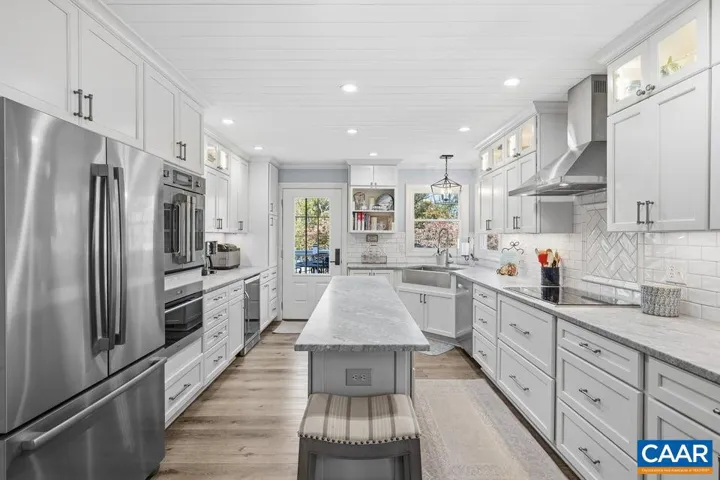Absolutely Stunning Countryside Home on 4 Gorgeous Lushy Acres! Experience peaceful country living with open, level land perfect for farm animals, gardens, or gatherings with family and friends. This home has been beautifully updated throughout. The kitchen is a showstopper and deserves a magazine feature?showcasing Wolf appliances, induction cooktop, easy access GE French door oven, Bosch refrigerator, wine cooler, marble countertops, and custom cabinetry with glass-fronts, interior lighting, and roll-outs. Inviting living space thru-out. The cozy living room features a wood-burning fireplace, large picture window, and custom window coverings thru-out versatile second living space is perfect for a home office or study. The primary suite offers a double vanity, walk-in glassed shower, and tile flooring. All bedrooms are generously sized w/fans. Additional upgrades include Trane 2-zone HVAC, Anderson windows (2 yrs old), new recessed lighting, new plumbing. New laundry cabinets and laundry chute. Enjoy stunning country views from all 3 decks including covered porch & almost all newly replaced decking. Unfinished walk-out terrace offers endless potential. This is a must see countryside retreat so well & lovingly cared for. Firefly.,Glass Front Cabinets,Marble Counter,White Cabinets,Fireplace in Living Room