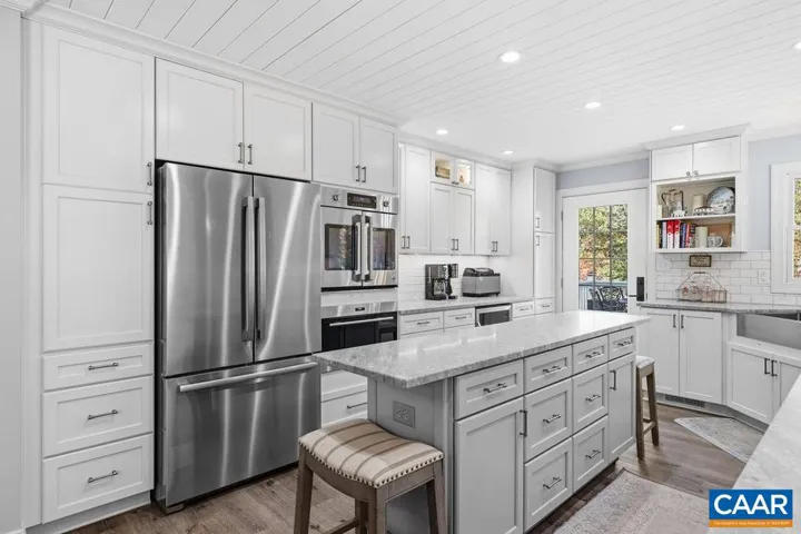 Absolutely Stunning Countryside Home on 4 Gorgeous Lushy Acres! Experience peaceful country living with open, level land perfect for farm animals, gardens, or gatherings with family and friends. This home has been beautifully updated throughout. The kitchen is a showstopper and deserves a magazine feature?showcasing Wolf appliances, induction cooktop, easy access GE French door oven, Bosch refrigerator, wine cooler, marble countertops, and custom cabinetry with glass-fronts, interior lighting, and roll-outs. Inviting living space thru-out. The cozy living room features a wood-burning fireplace, large picture window, and custom window coverings thru-out versatile second living space is perfect for a home office or study. The primary suite offers a double vanity, walk-in glassed shower, and tile flooring. All bedrooms are generously sized w/fans. Additional upgrades include Trane 2-zone HVAC, Anderson windows (2 yrs old), new recessed lighting, new plumbing. New laundry cabinets and laundry chute. Enjoy stunning country views from all 3 decks including covered porch & almost all newly replaced decking. Unfinished walk-out terrace offers endless potential. This is a must see countryside retreat so well & lovingly cared for. Firefly.,Glass Front Cabinets,Marble Counter,White Cabinets,Fireplace in Living Room