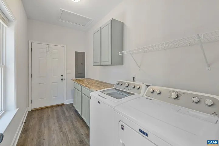 Enjoy privacy on 2 acres with a fenced backyard. This custom built home features a split bedroom layout and an open living, dining, and kitchen design ideal for everyday living and entertaining. Interior highlights include upgraded vinyl plank flooring, granite countertops, and soft close cabinetry. The spacious laundry room opens to a side porch that wraps around to a generous 12′ x 32′ back porch overlooking the yard. Built with 2×6 exterior walls and quality finishes throughout, the home also offers a large crawl space with a vapor barrier and extra storage. A new well casing was installed in 2022.,Granite Counter,White Cabinets