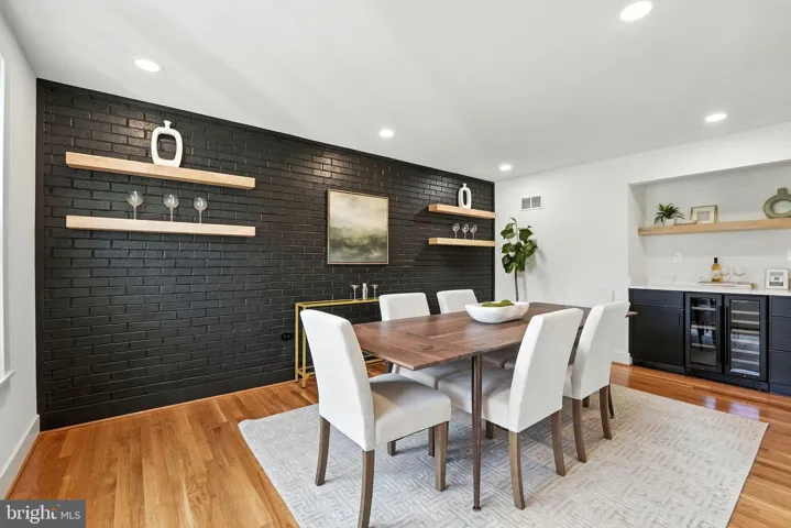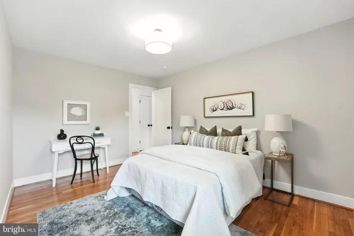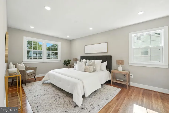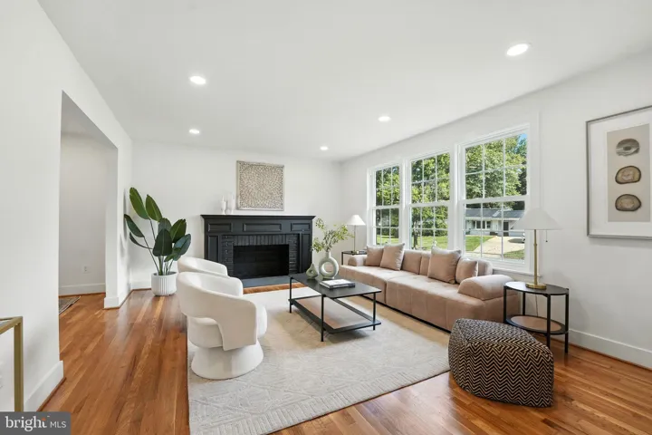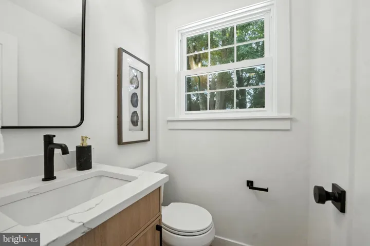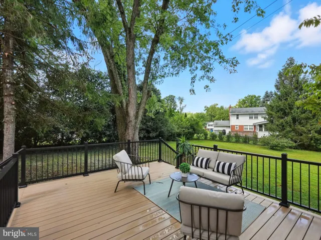A sun-filled foyer welcomes you, leading to an open layout that seamlessly connects each living space. The chef’s kitchen is a culinary masterpiece, showcasing a large center island with Calcutta Laza Quartz countertops, a beverage center, and elegant wood-finished slim shaker cabinetry. Natural hardwood floors flow throughout the main and upper levels, enhancing the home’s warmth and sophistication. The inviting eat-in kitchen area opens to a new oversized TimberTech deck with impression rails, as well as a new patio—perfect for entertaining in the private, tree-lined backyard.