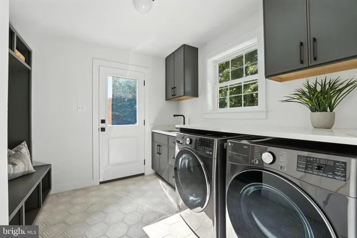 Relax in the spacious living room, featuring a charming wood-burning fireplace adorned with modern metropolis tile. The main level also offers a generous laundry room, mudroom with ample storage, and a convenient powder room.