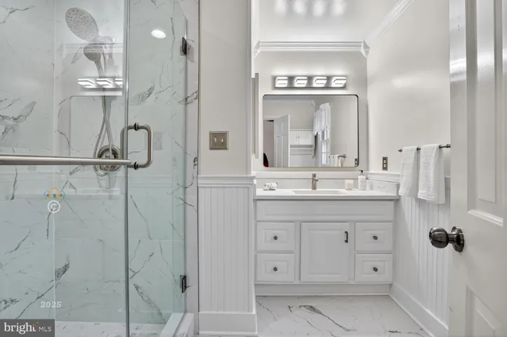 • Major master bath renovation featuring an expanded shower, quartz vanity top, top-of-the-line showerhead, new floor tile, hardware, and lighting