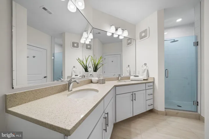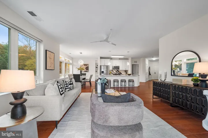 Welcome home to 9450 SILVER KING COURT, #202–contemporary luxury living in the heart of Fairfax City! This stunning 3-bedroom, 2-bath corner unit condo is a hidden sanctuary offering a perfect blend of modern elegance and everyday convenience. The open floor plan is filled with natural light and finished with sleek hardwood floors throughout the main living spaces. The gourmet kitchen impresses with refined quartz countertops, large island with seating, 42-inch upgraded white shaker cabinets, and stainless steel appliances—ideal for both cooking and entertaining. The spacious living and dining area features large windows overlooking peaceful greenery, creating a private and tranquil retreat. Enjoy outdoor views as you relax on your spacious balcony. The primary suite boasts an expansive walk-in closet plus two additional closets for ample storage. Its spa-inspired en-suite bath features a dual-sink vanity, walk-in shower, and custom built-ins for a truly relaxing experience. Two additional bedrooms feature brand-new carpet and share a beautifully finished full bath. The home also includes a full-size washer and dryer for added convenience. Additional highlights include a private locked storage unit directly across from the condo, an assigned parking space in the secure underground garage, and a dedicated bike storage area. THE ENCLAVE community residents enjoy access to premium amenities, including a tastefully designed lobby, a fully equipped fitness center, and a beautifully appointed club room with a gourmet kitchen—perfect for hosting larger gatherings. All this in an unbeatable location—steps from Fairfax City grocery stores, shops, gyms, and restaurants, with easy access to Routes 50, 66, 29, and I-495, minutes from the Vienna Metro plus George Mason University and City parks. Experience the best of modern living and urban convenience at 9450 Silver King Ct #202—a truly exceptional place to call HOME!