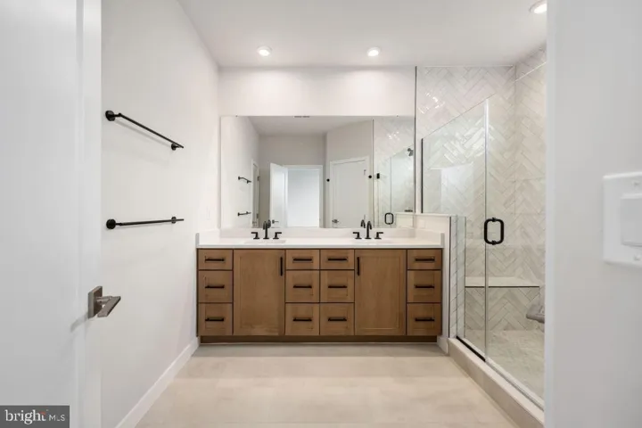 Designed with a bold modern aesthetic, this home features curated finishes and designer details throughout. The gourmet kitchen impresses with rich, warm-toned cabinetry, a statement black island, quartz countertops with a designer full-height tile backsplash, and matte black hardware. Professional-grade KitchenAid stainless steel appliances make this kitchen as stylish as it is functional.