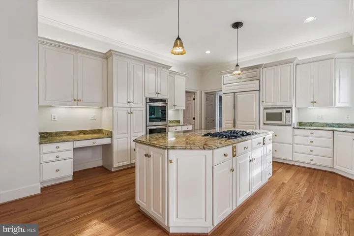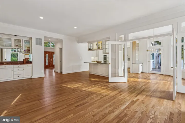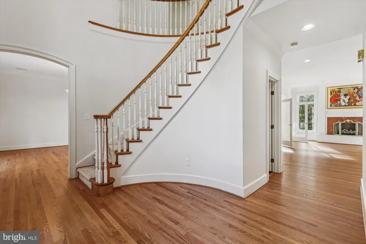 Truly a unique floor plan encompassing about 6200 square feet, step into the dramatic two-story entry foyer and you’re greeted by an elegant curved staircase, flanked by formal living and dining rooms designed for grand-scale entertaining with deep crown moldings and generous dimensions. The main level is graced with finished-on-site hardwood flooring that flows through almost all rooms. The heart of the home is the chef-style kitchen, wide open to an expansive family room anchored by a marble gas fireplace. This space flows seamlessly into the sunny breakfast room and kitchen. A commanding home office features handsome built-ins and wood trim. Upstairs, discover five enormous bedrooms and three full baths. The amazing primary suite is a private retreat, boasting two walk-in closets, a sunny sitting room that would make the perfect exercise room, and a private bath ensuite. The spa-like bath is equally spacious with separate vanities, a jetted tub, and an enclosed tile shower. One additional bedroom enjoys an ensuite bath, while the other two share a buddy bath.