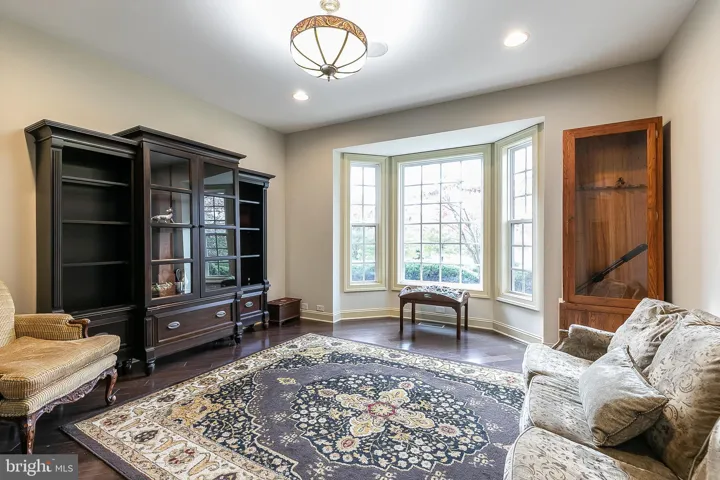 The main level is an entertainer’s dream. Natural light fills the study through French doors and a bay window, offering an ideal space for working from home. The formal living and dining rooms feature rich hardwood floors and intricate moldings, while the gourmet kitchen is a chef’s delight with granite countertops, a center island with breakfast bar seating, and premium stainless steel appliances. The breakfast area opens to a covered screened porch and Trex deck overlooking the expansive backyard, creating a perfect setting for morning coffee or evening gatherings with family and friends. The family room flows seamlessly from the kitchen and centers around a striking floor-to-ceiling stone gas fireplace and coffered ceiling. Surround sound and an intercom system throughout the home elevate both comfort and convenience. A mudroom drop zone, a laundry and sorting room with utility sink, and a freshly painted three-car garage with epoxy floors complete the main level.