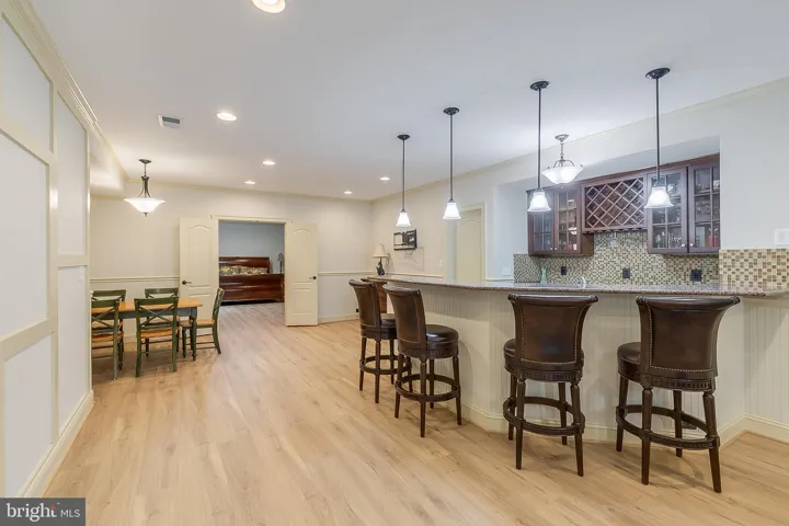 The lower level offers a fully finished retreat with a spacious walk-out recreation room, wet bar with seating, wine storage and tasting nook, and a private guest suite. With LVP flooring, recessed lighting, and elegant finishes, this level is ideal for entertaining or relaxing in comfort.