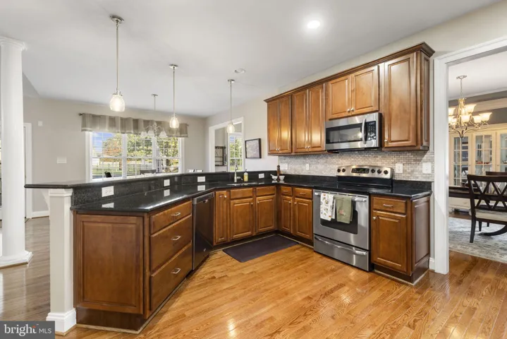 Welcome to The Oaks at Crossridge! This beautiful transitional home offers 5 bedrooms with a possible 6th on the third floor, complete with its own bath, and a total of 3.1 baths. The open floor plan features a family room with a vaulted ceiling and a gas fireplace, open to the eat-in kitchen with granite countertops, stainless steel appliances, and a breakfast bar. Crown molding enhances the welcoming foyer, living room, and dining room, which also features a tray ceiling. The first floor includes a dedicated office and a bright sunroom providing additional flex space. Upstairs are five spacious bedrooms, including a large primary suite with an expansive en-suite bath. The oversized garage offers a pedestrian door and built-in cabinets for extra storage. Outdoor living is easy with a fenced yard, deck, patio with a firepit, and attractive landscaping. Major updates include a new roof (2025) and hot water heater (2020).