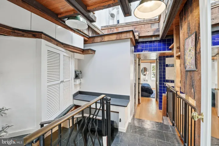 Throughout the home, intriguing architectural details and rich wood & stone tiles create a warm and distinctive atmosphere. Unique uses of tile, marble and wood add visual depth, while gracefully rounded openings lend a touch of artistry and fascination to the space. Many built in shelves, closets and the attic provide ample storage space.