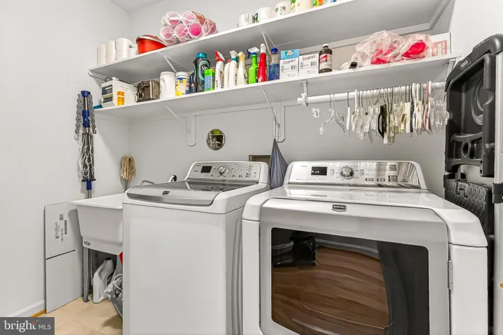 The laundry room includes custom storage shelving, and a powder room completes this level.