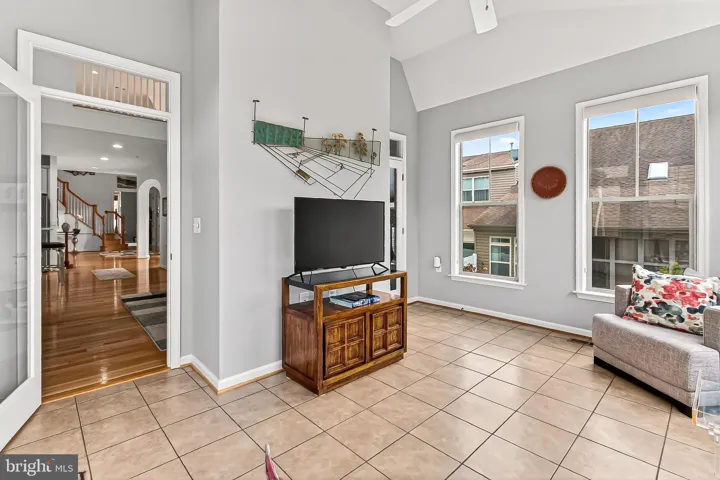 The bright and open main level features a spacious family room with dramatic ceiling height and abundant natural light, along with a welcoming sunroom perfect for entertaining or relaxing.