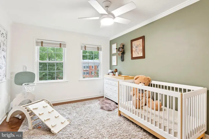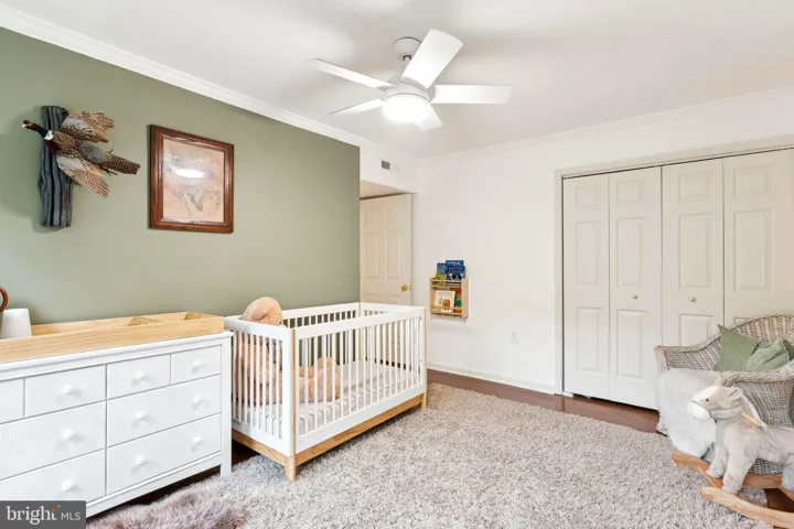 The primary bedroom is exceptionally spacious, showcasing custom moldings, a new light fixture, and a large closet. Two additional bedrooms offer ample storage and flexibility to meet your lifestyle needs.