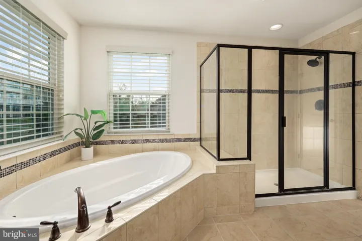 Upstairs, you’ll find four bedrooms and a convenient laundry room. The primary suite is a generously sized serene retreat with two walk-in closets and a sun-filled ensuite bathroom featuring a soaking tub and dual vanities.