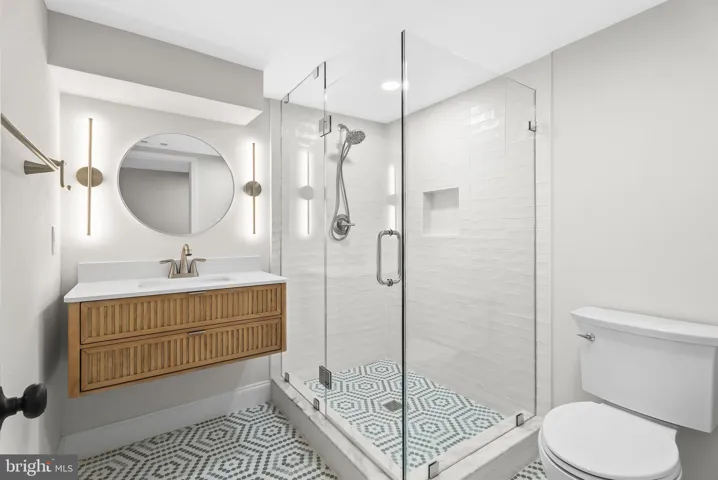 Newly remodeled townhome in Old Town West with a brand new kitchen and additional full bath added to basement. Spacious light-filled, and blocks away from Old Town Alexandria! Large living area opening to kitchen. Three bedrooms upstairs with two skylights & large hall bath with custom inset cabinet mirrors, dual sink vanity with marble tops & marble tiling. Finished lower level walk out with 12×24 rec room, full bathroom, and laundry. Deep front yard with brick walkway & fully-fenced flagstone patio in the back. Only blocks to two Metro stops, King Street shopping, boutiques & restaurants. Minutes away from Reagan National airport & the Waterfront!