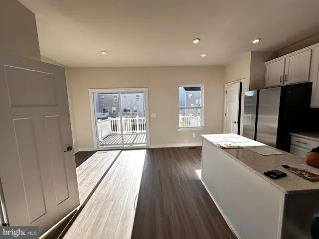 Enjoy an open-concept design connecting the living, dining, and kitchen areas—ideal for entertaining or everyday living. The gourmet kitchen shines with white cabinetry, quartz countertops, stainless steel appliances, a large island, and a pantry for extra storage. Step out to the 10×16 composite deck, perfect for outdoor dining, grilling, or simply relaxing with a view of open green space.