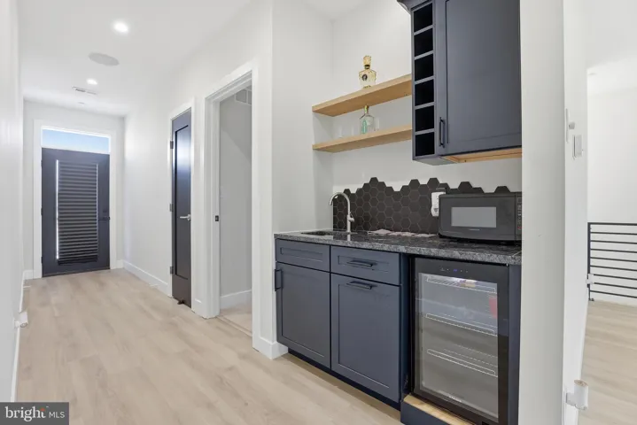 The **main living level** unfolds in an airy, open-concept design encompassing the kitchen, dining, and living areas, large walk-in pantry—perfect for gatherings and everyday life. The chef-inspired kitchen features a custom floating ceiling, pot filler, and a dedicated dog shower, all accented by modern finishes that define current coastal-contemporary style. Two bedrooms and two-and-a-half baths complete this level, offering flexibility for guests or a home office. This home features surround sound and a deck on each level.
