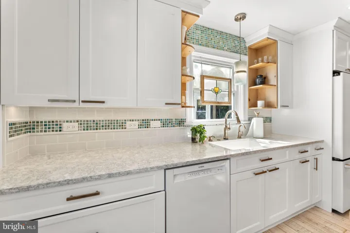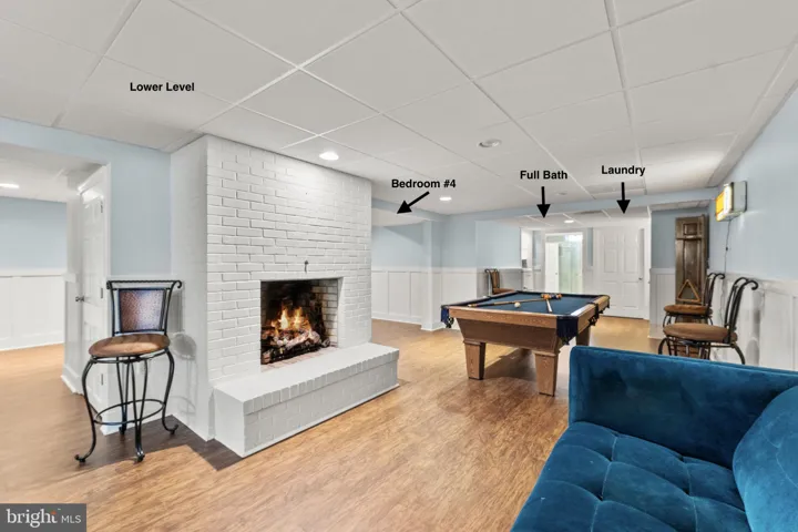 a brick waterside patio, a gourmet eat-in kitchen with granite countertops, tile backsplash, white shaker cabinets, updated appliances including adouble oven and six-burner gas stove, and a waterside owners suite with an ensuite bath featuring a floor-to-ceiling tiled walk-in shower. The main level also offers a dining room, office/den, and a waterside sunroom with tile floors (currently used as a dining room), plus two additional bedrooms and a hall bath with a charming claw foot tub. The lower level adds 1,896 finished sq ft with a spacious living area including a gas fireplace, wet bar, room for a pool table, seating area, fourth bedroom, full bath, and separate laundry room. A detached 2-car garage, fenced yard, waterside firepit
