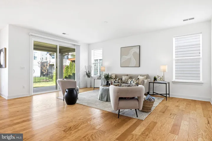 Inside, light pours across the engineered hardwoods that run throughout the entire home, no carpet or transitions, just a seamless foundation that anchors every room. The open concept layout is airy with natural light streaming in from every direction and a layout that feels connected yet purposefully designed. The kitchen strikes just the right balance between style and function with granite countertops, classic wood cabinets, stainless appliances, and an island that keeps prep, dining, and conversation flowing naturally.