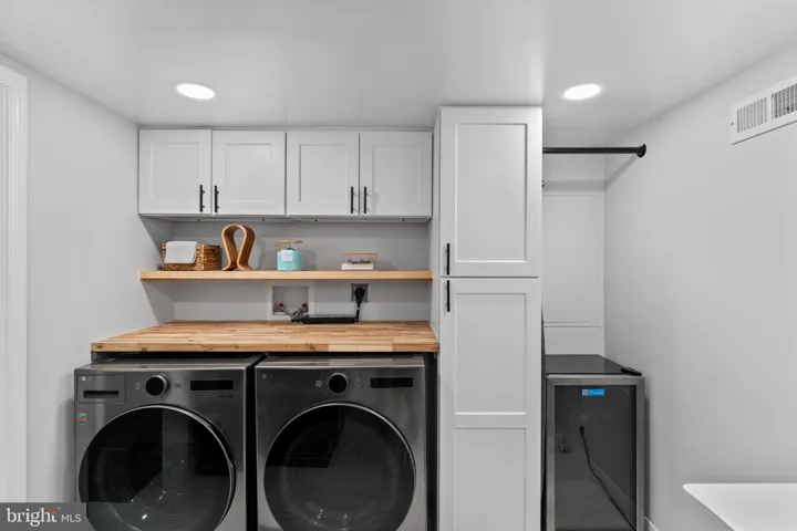 Upstairs offers two spacious bedrooms with hardwood floors and redesigned closets, along with a fully renovated full bath (2024) featuring modern finishes. The lower level provides a versatile family room or guest suite, an updated full bath, new LVP flooring, custom cabinetry, and a completely redone laundry room with new LG washer and dryer.