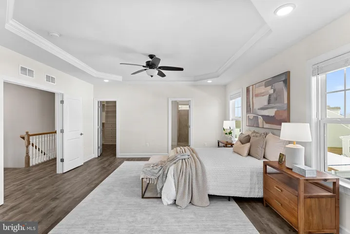 Welcome to 8682 Belle Grove Way — a beautifully curated home where thoughtful upgrades, refined finishes, and generous living spaces come together effortlessly. This 5-bedroom, 4.5-bath residence opens with a formal dining room enriched with crown molding, wainscoting, and a statement chandelier, along with a private office framed by French doors. The gourmet kitchen impresses with expansive counters, abundant cabinetry, double ovens, a gas range, upgraded island lighting, a French-door refrigerator, and a walk-in pantry, all flowing into a bright, open living area. The upper level hosts a standout primary suite with tray ceilings, a spa-inspired ensuite bath, and custom walk-in closets with upgraded built-ins. The finished lower level adds flexibility with a bedroom, full bath, theater/entertainment room, rough-in for a future bar, and walk-up access to the fenced backyard. Outdoor spaces include a deck and patio ideal for everyday enjoyment. Notable enhancements include window treatments throughout, ceiling fans in all bedrooms and the living room, two garage openers with a myQ system that conveys, a Tesla charger, a new refrigerator, an air scraper, VU air sanitizer, and integrated dehumidifiers within the AC system. Set in a convenient Manassas location, the home offers easy access to shopping, dining, parks, major commuter routes, the Prince William Parkway, VRE Manassas Station, historic Old Town Manassas, and local arts and recreation, creating a well-rounded living experience with everyday ease.