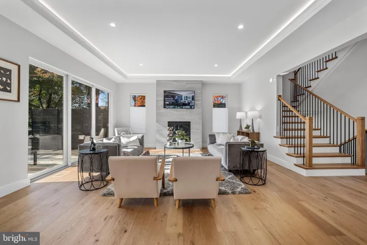 This home is beautifully designed for both everyday living and grand entertaining. From the moment you arrive, a charming front porch welcomes you into a dramatic, light-filled open layout featuring 7.5” wide European oak floors, 6″ Baseboard, 10 ft ceilings on the main level, 9 ft upper level and lower level. Rich wood accent walls add warmth and texture throughout.