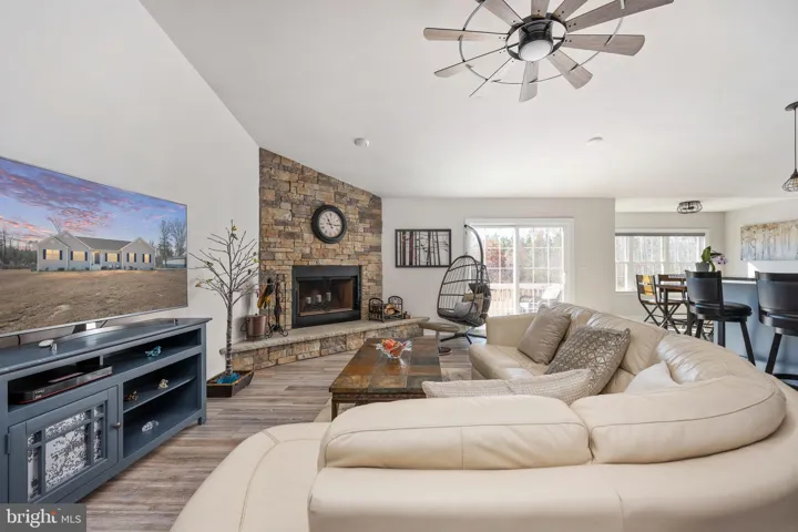 This beautifully designed 3-bedroom (plus two spacious flex rooms without closets), 2-bath home was crafted for both functionality and refined comfort. The open-concept layout features a soaring cathedral ceiling and a stunning stone wood-burning fireplace on a raised hearth, creating a warm and inviting atmosphere. The chef’s kitchen includes a generous walk-in pantry, ideal for both everyday convenience and entertaining guests. For relaxation or creative pursuits, the soundproofed den offers the perfect space for music, movies, or quiet retreat.