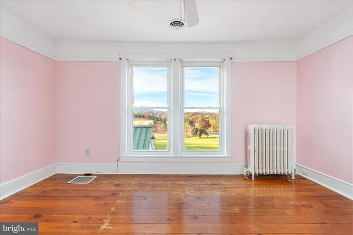 Situated on 2 acres with a seasonal stream in the backyard, the property also includes a detached two-car garage with a walk-up attic for extra storage. Inside, you’ll find beautiful original hardwood floors, 9-foot ceilings, crown molding, and a cozy woodstove for those chilly winter nights.