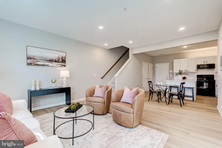 The main level features an open-concept living and dining area with brand new wide-plank flooring and fresh paint throughout ๐จ. The stunning gourmet kitchen showcases white cabinetry, white subway tile backsplash, quartz countertops, a spacious island, and a pantry ๐ฝ๏ธ. A stylishly renovated powder room and direct access to the one-car garage with epoxy flooring and a private driveway complete this level ๐.