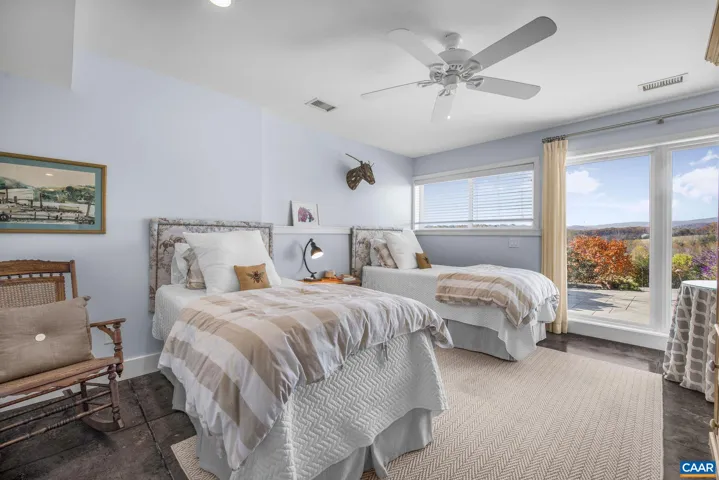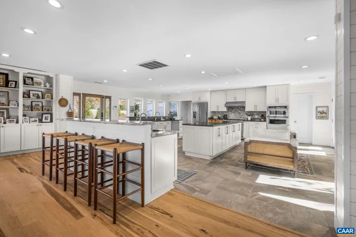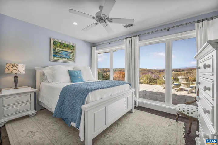 Experience luxurious country living with this stunning contemporary estate in Madison, offering panoramic views of the Blue Ridge Mountains and frontage along the Rapidan River. Set on 24 beautifully landscaped acres, this property combines modern comfort with natural beauty. In 2021, a charming two-bedroom, one bath guest house and heated salt water pool with fire pit were added, creating the perfect retreat for entertaining or relaxing. The main residence was completely renovated in 2022, featuring a gourmet kitchen with Wolf range gas oven and a cozy seating area and fireplace, a main-level primary suite, and breathtaking views from every room. Enjoy manicured year-round gardens that ensure something is always in bloom, and a three-car garage with space for large vehicles. With Walkers Mill Road currently being paved, this exceptional property offers easy access while maintaining the serenity of its private setting?an ideal blend of contemporary luxury and country charm.,Granite Counter,Maple Cabinets,Painted Cabinets,White Cabinets,Wood Cabinets,Fireplace in Den,Fireplace in Kitchen