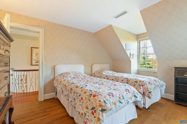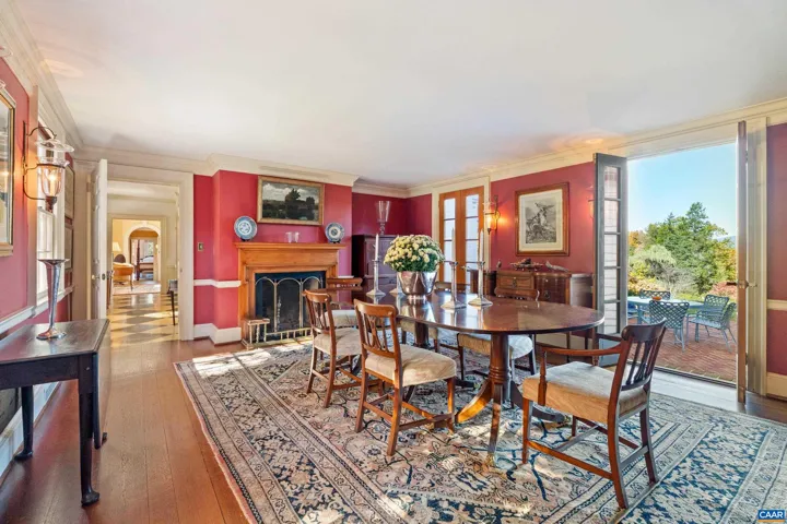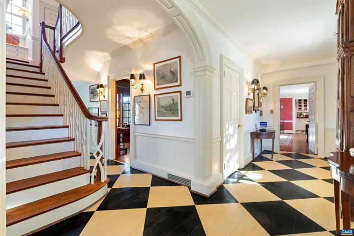 This classic Georgian brick home at Farmington Country Club, designed by John Henderson, is one of just eleven properties offering direct views of the Blue Ridge Mountains. It overlooks a boxwood grove and boasts 299 feet of direct golf course frontage. The landscaped grounds, with mature Magnolia trees and flowering dogwoods, provide privacy close to town, UVA, and Farmington Country Club. Amenities offered by Farmington are golf, tennis, pool, fitness center, and fine dining all in a secure setting. The residence underwent extensive renovation and expansion in 2016 under the current ownership, with comprehensive system upgrades and the addition of a spacious, open kitchen and family room. The house was reimagined by architect Jay Dagleish of Paxton and Dagleish.