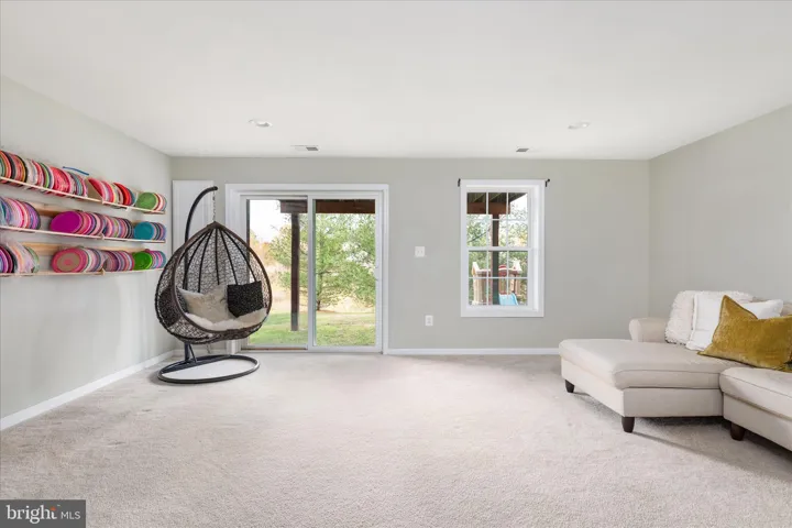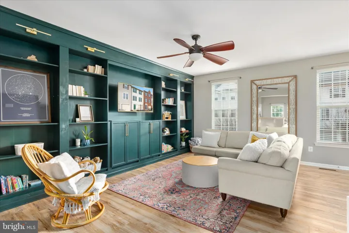 The main level is perfect for entertaining, featuring an open-concept design with a large kitchen that includes granite countertops, an island, and generous dining space. Step out onto the deck to enjoy a peaceful view of open space and trees—a rare find in this community where most homes back to other homes. The inviting living room showcases a full wall of built-in shelving with integrated lighting, adding both character and function.