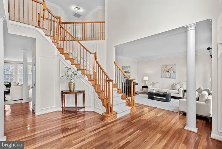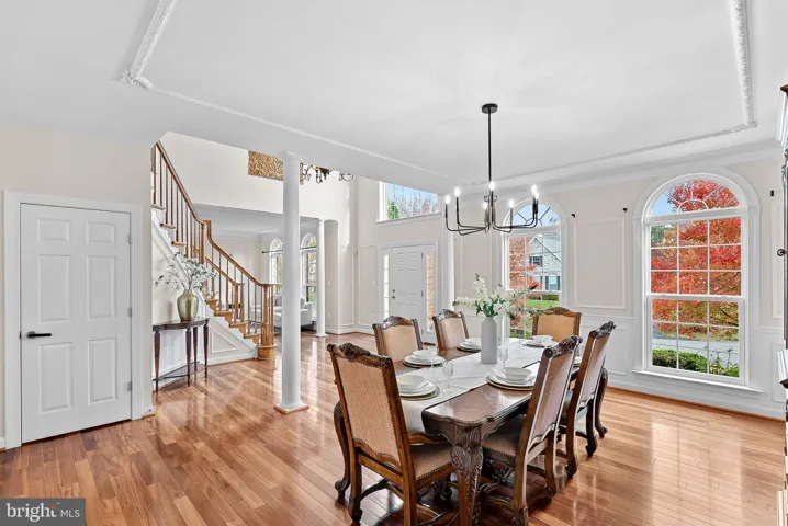 Enter through a grand two-story foyer with a curved staircase and abundant natural light. Hardwood floors and detailed crown molding flow through the formal Living and Dining Rooms, each enhanced by brand-new lighting—perfect for entertaining. The spacious Family Room centers around a stone gas fireplace and opens to a gourmet eat-in Kitchen with granite countertops, a large island, brand-new stainless steel appliances, and a bright sunroom overlooking the lush backyard. A private Office with built-ins and a large Mudroom add convenience, while the expansive Trex deck provides a relaxing outdoor retreat.