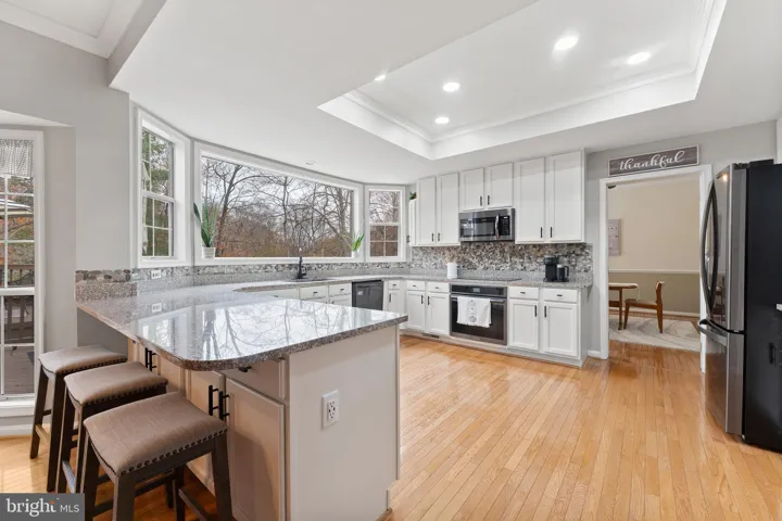 Welcome to your own private retreat! This home offers luxury living both indoors and outdoors. The extensive hardscape, complete with saltwater pool, stone retaining walls, sidewalks & patios, backs to a serene, wooded area. (see homeowner video). Upfront is an inviting front porch as well as a newly expanded three-car parking pad. This charming 6 bedroom/4.5 bathroom house provides over 4,000 finished sf. Most of the home has been freshly painted and updated. Hardwood floors are found on the first floor along with detailed moldings located on both the main and upper levels. The gourmet kitchen boasts granite countertops, stone backsplash, SS appliances, tray ceiling and recessed lighting plus a built-in desk. A prominent feature of the kitchen is the expansive picture window overlooking an array of trees and the backyard. The eat-in, table space was bumped out two feet here and the entire length of the adjoining family room. A floor-to-ceiling fireplace with raised hearth and stone façade anchors this room. Sunlight pours in through oversized windows in the formal dining room and study. Built-in cabinet and desk provide the perfect work at home office space. Five generously sized bedrooms are found upstairs. The primary ensuite offers a cathedral ceiling, updated bathroom and walk-in closet. A full hall bath provides plenty of natural light via the skylight. A finished room over the garage (FROG) includes an ensuite bathroom, skylight, walk-in closet, cathedral ceiling and custom window. The walk-out basement boasts a huge rec room, wet bar, sixth bedroom and full bathroom. Exit the basement to a stone patio with pergola. The saltwater pool received a recent update with a new Jandy pump and surrounding Sundek decking. The backyard oasis also includes stone retaining walls, patios, firepit, walkways, wrought iron fencing, outdoor shower and a large deck off the family room. This property is not just a home; it is a lifestyle choice! Summertime photos provided by Homeowner