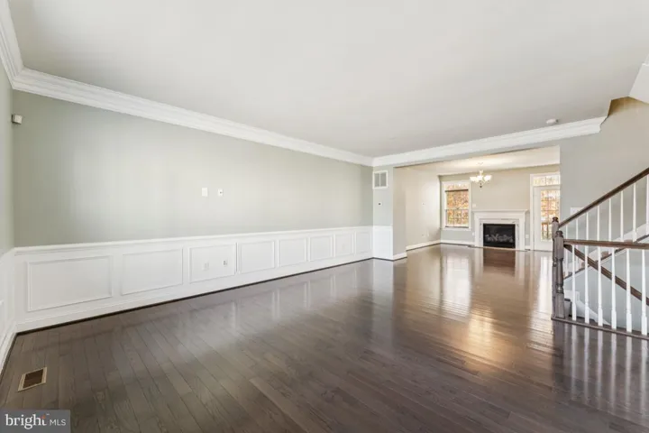 The Main level features a dramatic 2-story foyer, an open floor plan, beautiful Hardwood floors, Gourmet Kitchen with stainless steel appliances and kitchen island, Family room with a gas fireplace right off the Kitchen, Dining area, Crown molding throughout, a powder room and views of the fully fenced backyard that backs to trees.