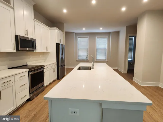 The home features 3 bedrooms, 2 full bathrooms, 2 half bathrooms. The lower level features a spacious 2-car garage, a half bath and a closet, perfect to guests or a tucked away home office. As you go up the stairs, a stunning main level opens up flowing from the family room to the kitchen and dinning room. It features soaring 9+ feet ceilings and luxurious 7′ tall windows that flood the home with natural light. The open concept layout is anchored by stunning oak LVP floor and a chef’s dream kitchen with the over size massive 12 feet quartz countertops; perfect to prepare meals for your family or guests at the center of attention when entertaining. Step out onto the spacious deck for outdoor dining or peaceful relaxation. Your primary en-suite features a private bath with separate vanities and oversized walk-in show, and a walk-in closet.
