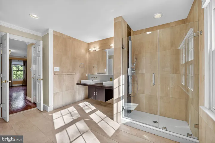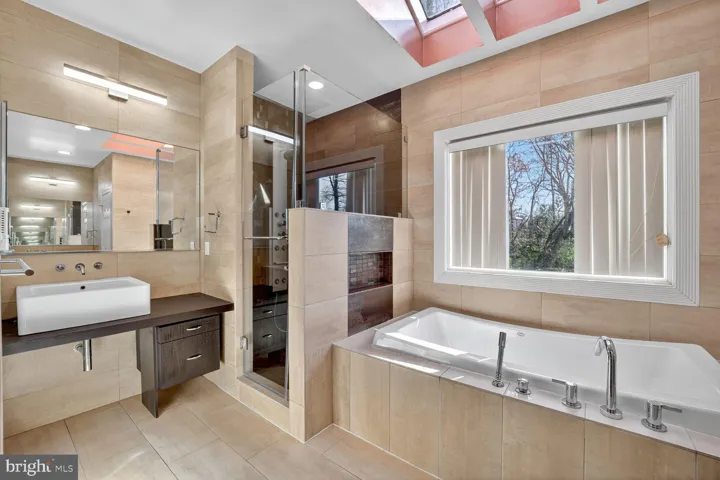 This gorgeous and beautiful home nestles in a quite and private setting, prestigious neighborhood in a desired location in Bethesda. This stunning home has been upgraded new HVAC system, kitchen floor, refinished kitchen cabinetry, all new kitchen appliances – GE profile refrigerator, wall oven and new wolf induction electric cooktop with fan system, new dishwasher, new blinds and new washer & dryer, new runner carpet, new carpet in the rooms in lower level. Freshly painted main and upper level, this home meticulously maintained by the homeowner is the largest builder floor plans with an open architectural concept and soaring spaces that create an exceptional visual appeal throughout. Enter through a magnificent two-story foyer featuring an dazzling chandelier and elegant curved staircase. Sun-filled living room boasts a solid masonry fireplace, decorated Palladian windows and doors leads to the deck, seamlessly to an elegant formal dining room, dazzling chandelier with taste wainscoting, the heart of the sumptuous kitchen, complete granite countertop, island, beautiful backsplash, abundant counter space, pantry, green house window, breakfast area adjacent to the sliding door brings to the huge Trex deck and overlooking private wooded views in backyard. With a cozy reception room welcomes your guests, leads to a spacious private office built-in shelves with expansive windows looking backyard, just across a spacious a master suite with luxury contemporary bathroom sun-filled through skylights on the main level with hers and his closets. The upper level another master suite is a true retreat, featuring a luxurious oversized Jacuzzi tub with double vanities, his and hers walk-in closets, and a separate glass-enclosed shower. Finished walk-out lower level has three rooms with one and half bathrooms in a wide open spaces withe fireplace an Wet bar for a small banquet. Exquisitely landscaped grounds feature flowers and trees, gardens and colorful seasonal blooms. Top-ranked schools in the Montgomery County Public School system, easy access to I-495, I-270 and local roads for commuting, entertaining and shopping nearby Montgomery Mall.