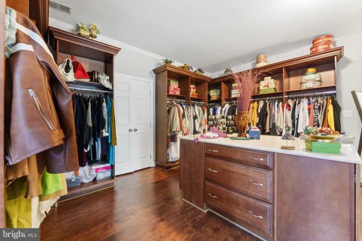 • An enormous, unexpected dressing room w/a center island, extensive built-ins, a cedar closet, space for a desk, and room for ironing or staging wardrobe pieces. This dream closet also includes a private back staircase offering direct access to the garage.