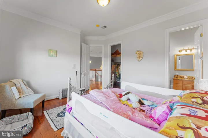 A circular upper foyer leads to 3 spacious secondary bedrooms, each offering hardwood floors, crown molding, walk-in closets, and en-suite baths featuring designer tile.