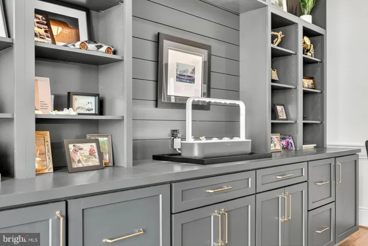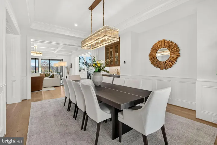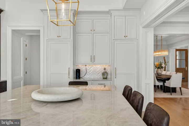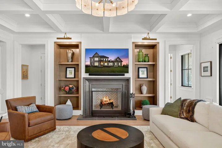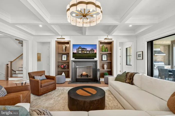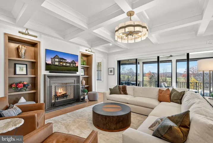 At its heart, the Gourmet Chef’s Kitchen shines with professional-grade stainless-steel appliances, Quartz countertops, an oversized entertaining island, and both a walk-in scullery (with dishwasher, Sub-Zero beverage fridge, sink, and an additional Wolf oven) and a Butler’s Pantry that services the formal Dining Room. The adjoining Great Room, crowned with an elegant coffered ceiling, opens seamlessly to the covered terrace where panoramic sunsets create a nightly masterpiece. A main-level laundry Room in the primary suite and Mudroom complete this floor.
