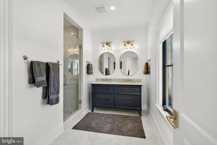 The main level hosts a serene Primary Suite crafted as a true retreat, complete with dual vanities, a soaking tub, and a generous dual-entry walk-in shower. Three fireplaces—located in the Family Room, Primary Suite, and lower-level Recreation Room—bring warmth and ambiance throughout the home.