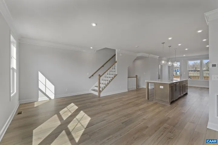 Introducing the Holly II, a three-story end unit townhome under construction now in the newest phase of Belvedere, with completion expected in October. This layout offers flexibility and space, starting with a first-floor bedroom and full bath that could work well as a guest room, home office, or extra hangout area. The main level includes a roomy kitchen with a walk-in pantry, open dining space, and a bright family room, along with a convenient half bath. Upstairs, you?ll find the primary suite with its own private bath, two additional bedrooms, a shared hall bath, and laundry nearby for easy access. Features like oak stairs with open railings and gas appliances add a clean, finished feel. A two-car garage sits at the back of the home, providing both parking and additional storage. Belvedere offers an array of amenities, including access to parks, close proximity to the Rivanna trailhead, the nearby SOCA Fieldhouse, a dedicated dog park for pet owners, and enchanting playground areas. Photos are of similar home and may show optional upgrades. Actual photos coming soon!,Granite Counter,Maple Cabinets,Painted Cabinets,White Cabinets,Wood Cabinets